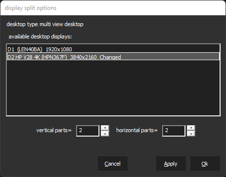 Set the split according to the topology that was used when setting up Mosaic or display expander: