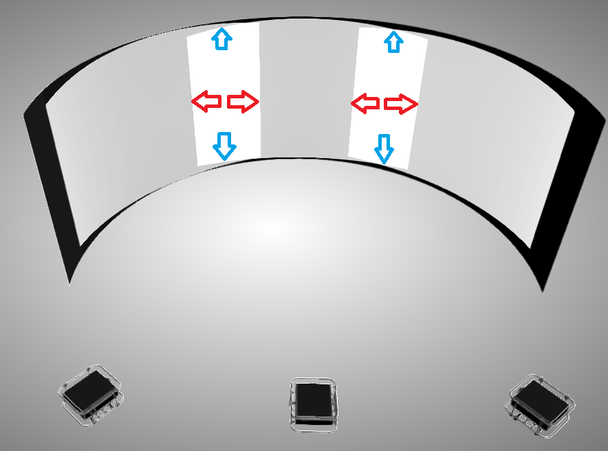 Curved screen (fast scanning) Camera-based method for curved screens, spherical screens, and domes (Examples: Planetariums, event domes, cylindrical panoramas, 360 panoramas, truncated domes, semi-spheres, etc.). The extrapolation works on polynominals and provides a rich set of parameters and insight into the usage of the scanned result. It offers masks for tweaking the blends during scan time.