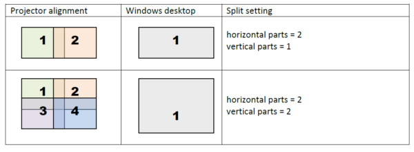 With a mosaic configuration or display expanders (such as Datapath FX4, Matrox Triplehead2Go, etc.), the aggregated display must be split back according to it's topology to expose each projector for calibration.