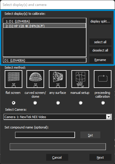 In this section, you can see all of the displays that are made available by Windows.IWhen If all projectors are displayed in this way, continue by multi-selecting them all to participate in the calibration.