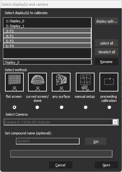 In VIOSO, the user only needs to select the camera and surface geometry. The calibration process then proceeds step by step through a clear, guided assistant. All master-client relationships are managed in the background, providing a relatively simple user experience.