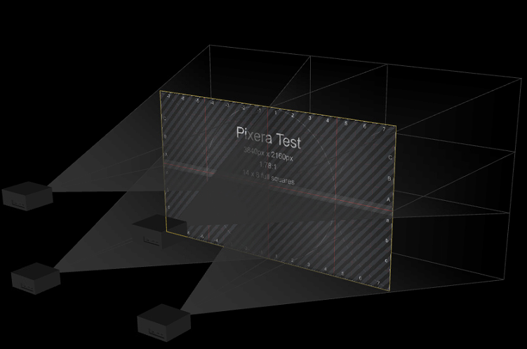 <figure><img src="https://3901153090-files.gitbook.io/~/files/v0/b/gitbook-x-prod.appspot.com/o/spaces%2FqQOJaA9kiXUCmPo5Lma3%2Fuploads%2FdLHfKTL5Ul2HaJWvRUax%2Fimage.png?alt=media&#x26;token=d294a087-7a5c-4a31-8317-f4f78f3bd1f1" alt=""><figcaption><p>Example of a proper screen setup with roughly placed projectors displaying a test pattern</p></figcaption></figure>