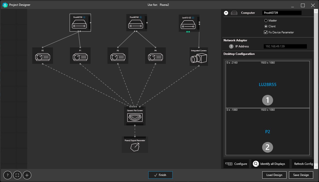 After launch the Project Designer shows up, preconfigured with the settings made in Pixera: