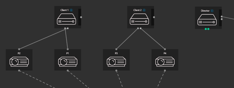 In the following walkthrough we consider a typical setting consisting of 4 projectors on two clients, run from a dedicated Pixera Director: