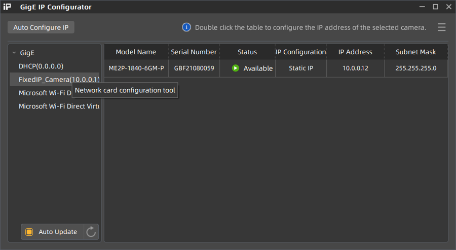 Download the manufacturer tool “Daheng Debugging ConfigureIP”