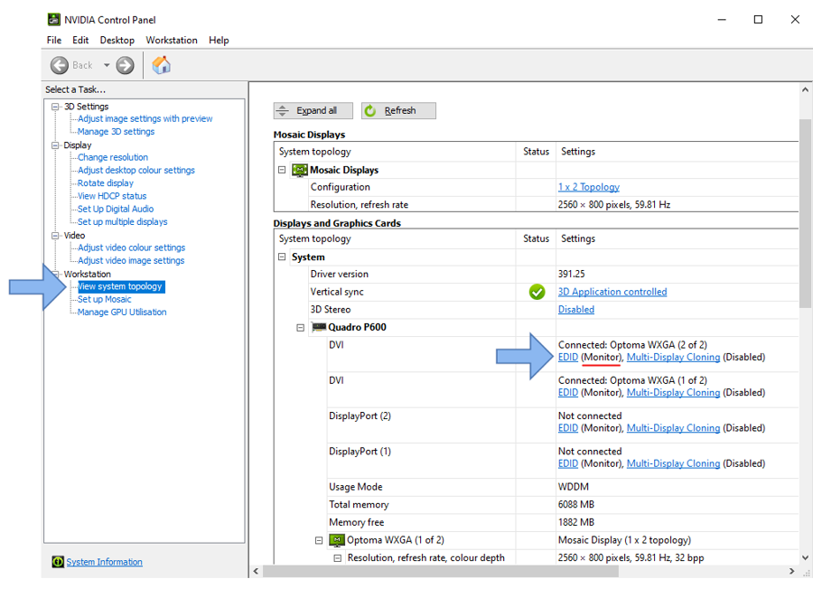 Step 2: Click on "View System Topology" and locate the display you want to modify and export EDID data. Click on 'EDID' (it should be marked as "Monitor").