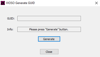 To generate the GUID, you can use the VIOSO_GenerateGUID tool: Menu Tools => Generate GUID Tool. Alternatively this tool is availabe in the folder Shared Tools inside the programs installation path, e.g. C:\Program files\VIOSO 6 \Shared tools\.