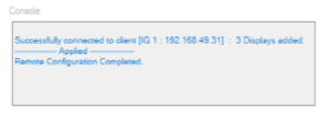 Applyto save and complete the configuration. The console will display “Remote Configuration Completed”: