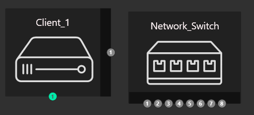 Nodes can be inserted arbitrarily to represent the entire setup that you want to use. Nodes may have black areas with dots representing connection points: