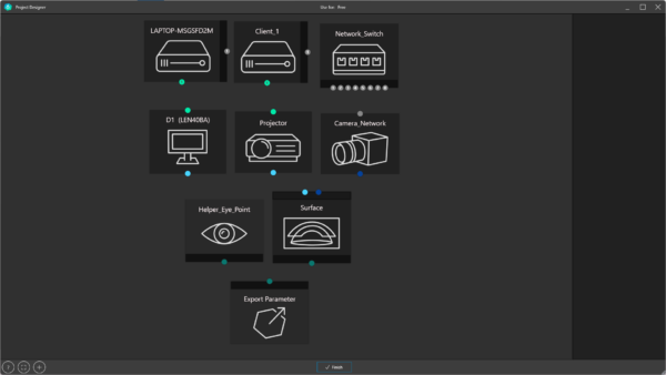 Each node represents an instance of the calibration. Be it a server that outputs the signal or a surface that is projected onto. Up to and including the export settings, most of the advances can be found in the new Designer tab.