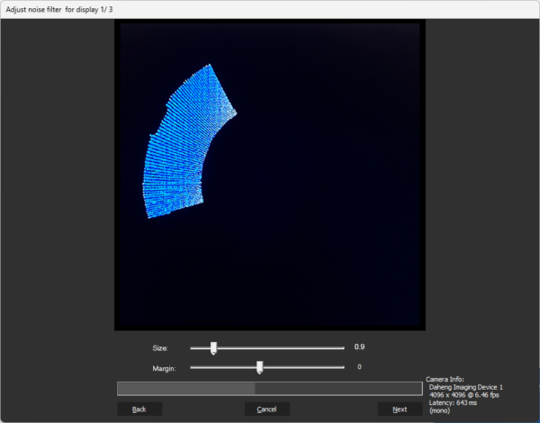 If you see errors like wavy lines, black spots on the projector, edit the extrapolation parameters or repeat the scan.