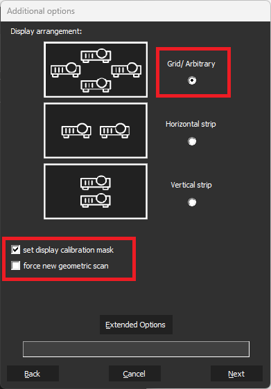 * Check “set display calibration mask” to create masks on projectors => strongly recommended