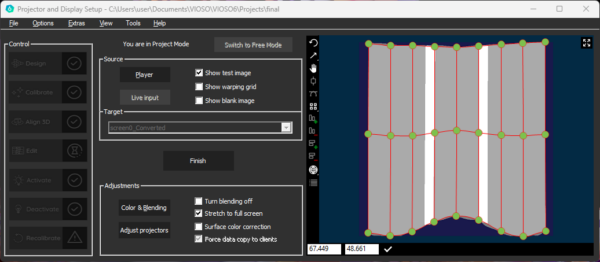 When activated, in the next step masks can be created and applied to each projector. This is important to avoid overshooting on floor and ceiling.